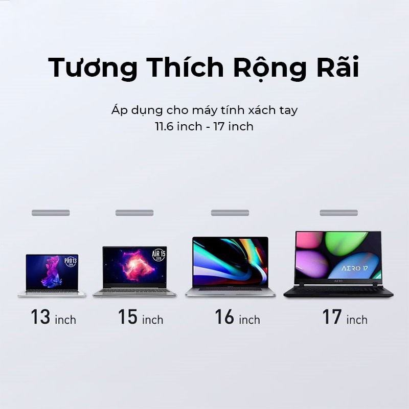 💎 Sản phẩm khuyên dùng cho laptop dưới 17inch và cân nặng dưới 2kg và có mặt đế bằng phẳng.