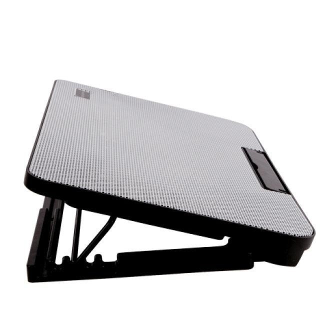 Thiết kế gọn nhẹ, thông minh, bề mặt khá rộng, mặt dưới có tính năng chống trượt.Có 2 quạt, đế nâng 45 độ cho laptop từ 10-17 inch