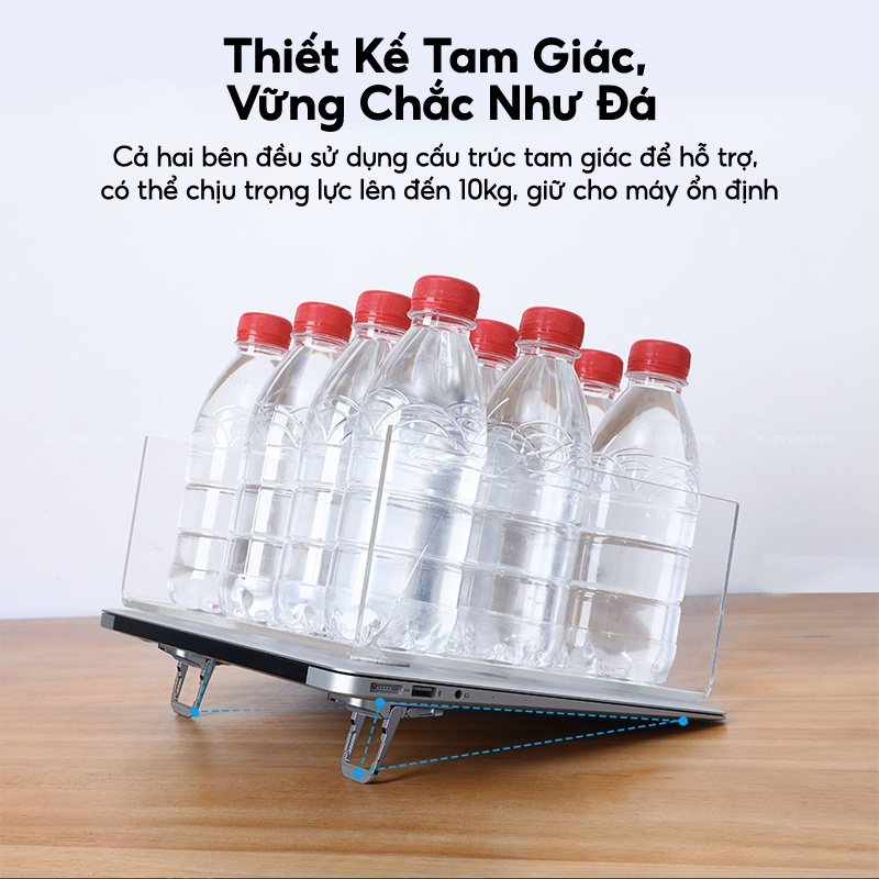 - Thiết kế tam giác để hỗ trợ máy, có thể chịu lực lên đến 10kg, giữ cho máy ổn định.