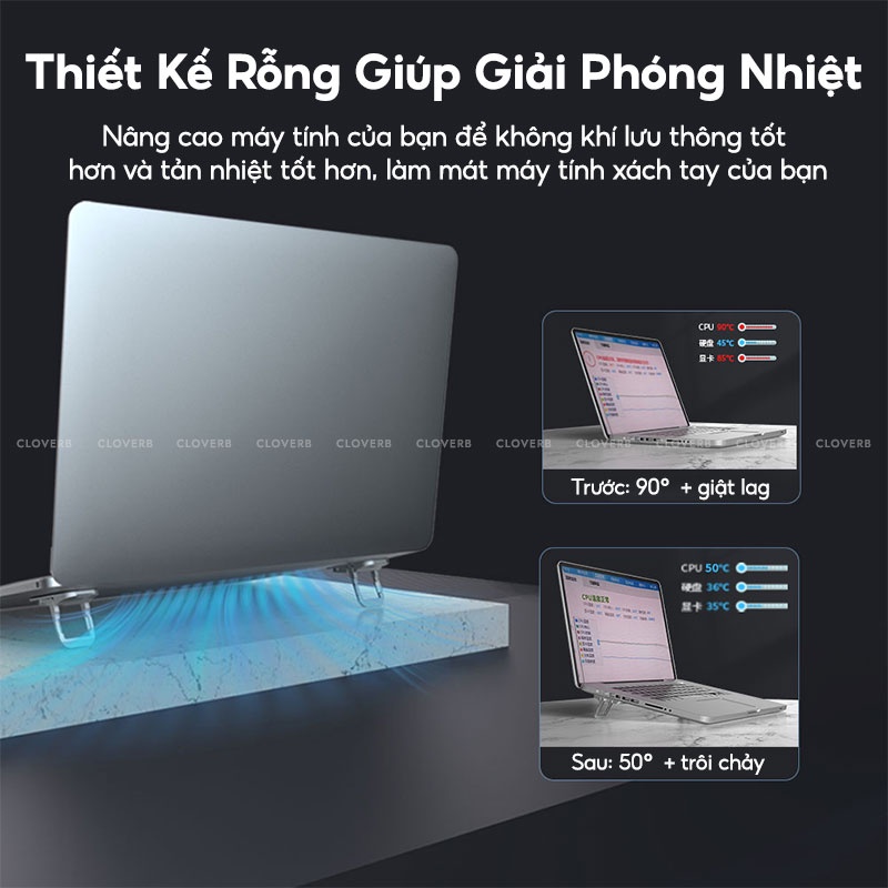 - Thiết kế rỗng giúp Macbook, Laptop của bạn có được sự thông thoáng và tản nhiệt tốt hơn giúp làm mát máy tính của bạn.