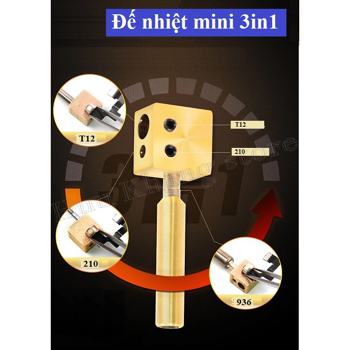 Đế nhiệt mini gắn tay hàn 936/T12/210- Đế nhiệt mini có thể găn các tay hàn thông dụng nhất hiện nay: 936/T12/210