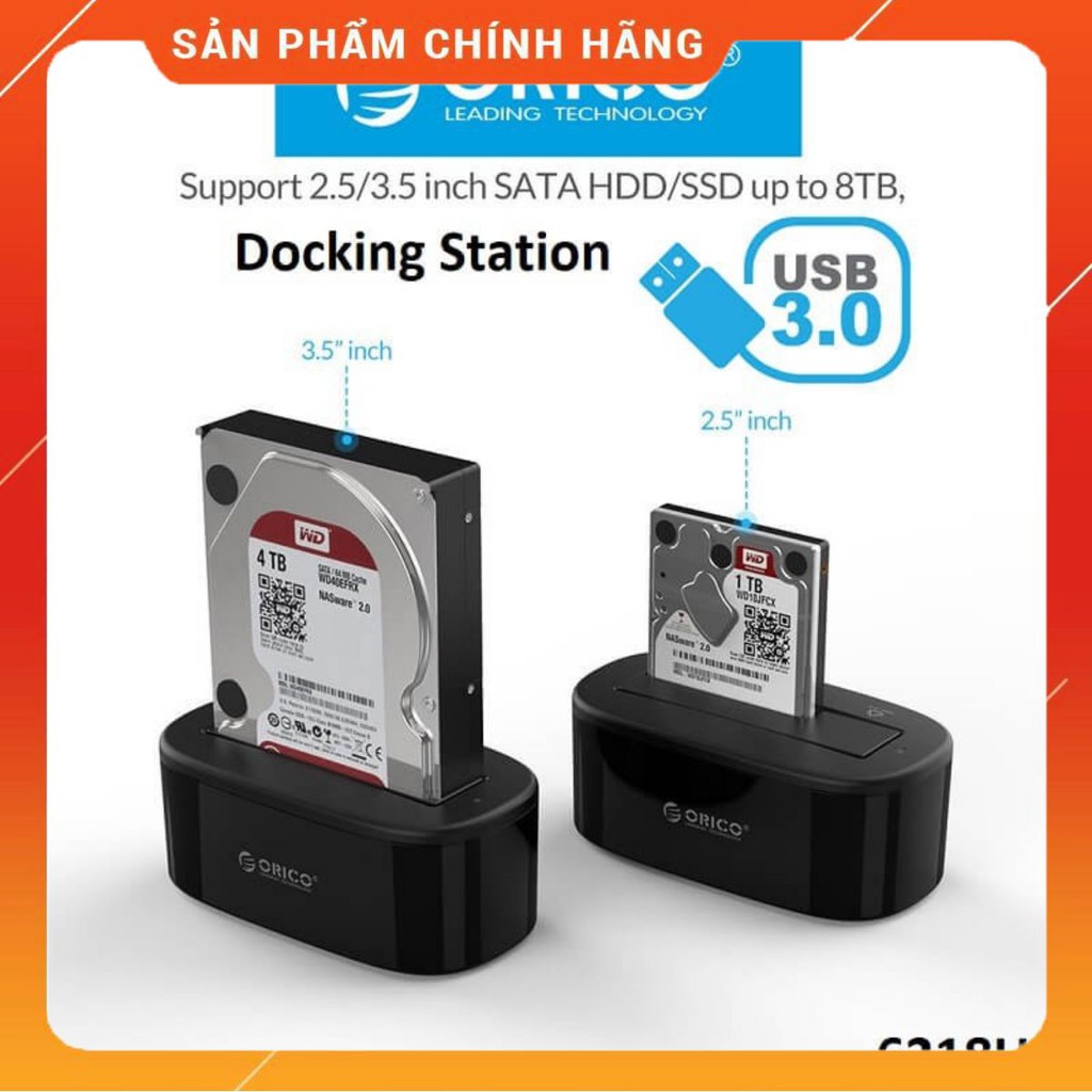 Máy tính & Laptop > Thiết Bị Lưu Trữ > Thiết Bị Đựng Ổ Cứng || Đế ổ cứng (Docking) 1 khe cắm ORICO 6218US3 3.5" và 2.5" SATA 3 USB 3.0 - Hàng phân phối chính hãngCòn hàng