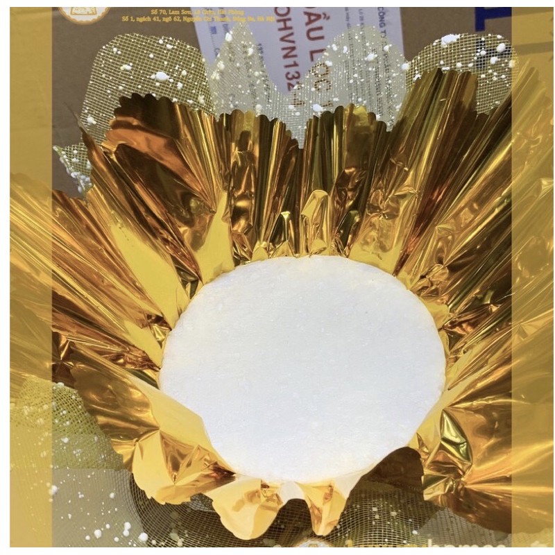 Đế Oản tròn đã trang trí sẵnlõi trong là lõi xốp , bọc giấy thuỷ ngân và giấy lưới tuyết