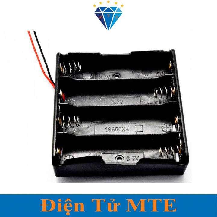 Hộp đế pin 4 viên 18650 là sản phẩm đế lắp cố định pin kích cỡ 18650 dùng để cấp nguồn cho robot, xe điều khiển, dự án cần sử dụng pin sạc nhiều lần..vv. Sản phẩm có nhiều loại khác nhau như 1pin, 2 pin, 3 pin, 4 pin nối tiếp cho khách hàng lựa chọn tùy theo nhu cầu sử dụng.