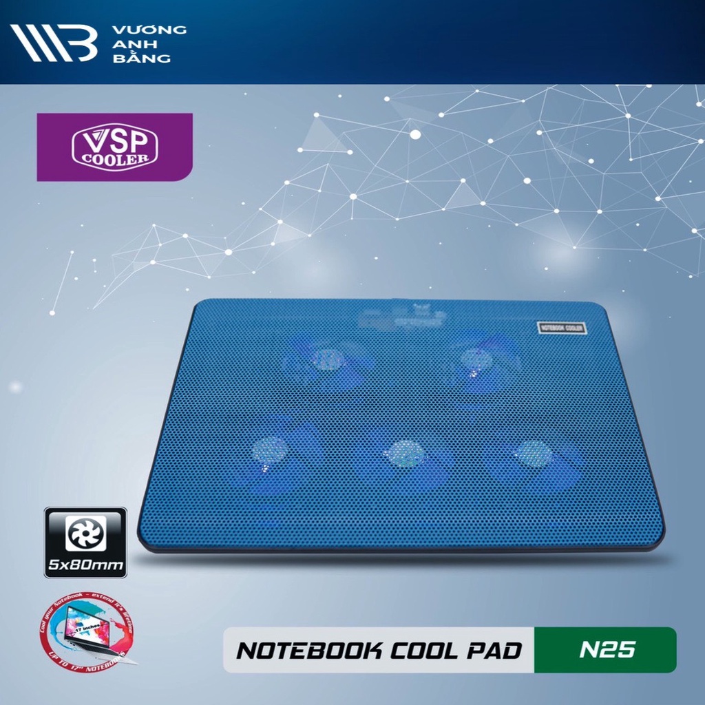 Đế quạt tản nhiệt laptop 5 fan Cool Pad VSP N25 làm mát nhanh