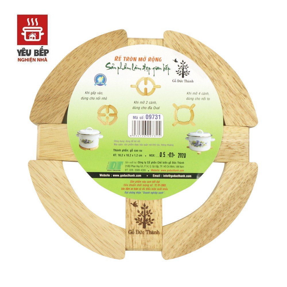 - Đế (Rế) Lót Nồi Bằng Gỗ Họa Tiết Hình Tròn Mở Rộng 09731- Gỗ Đức Thành được làm từ chất liệu gỗ cao su có khả năng chịu nhiệt và chịu lực tốt nhằm mang lại cho người tiêu dùng sản phẩm có tính bền bỉ với thời gian.