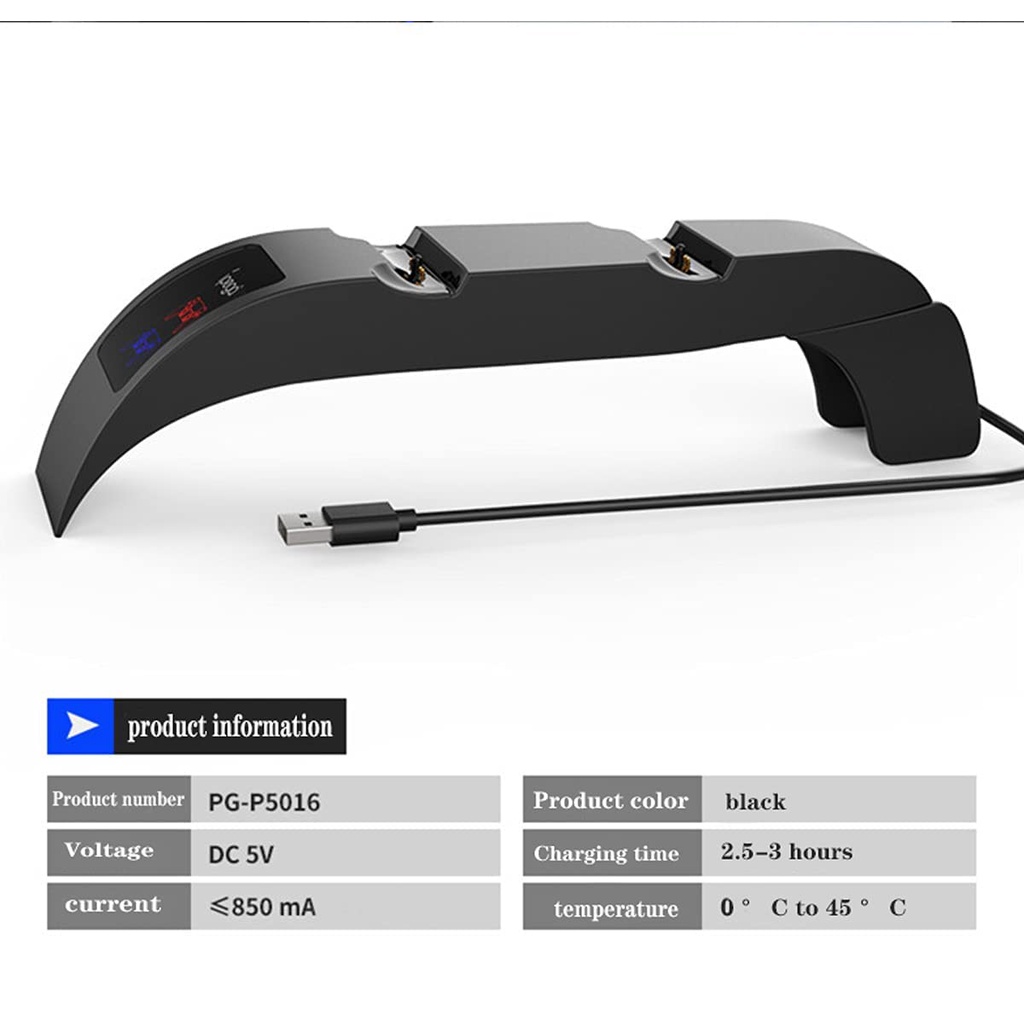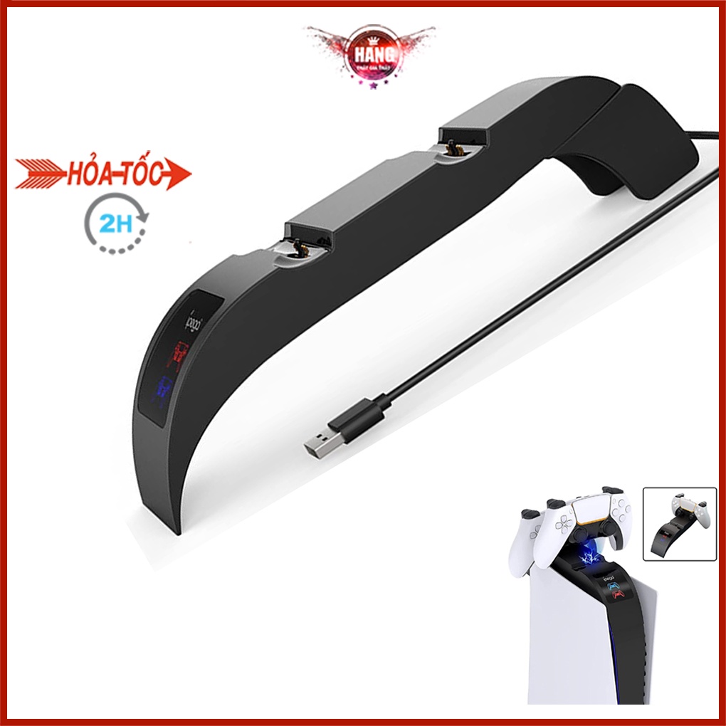 👉Ưu điểm: 2,5H để sạc đầy bộ điều khiển kép; Được thêm vào đầu PS5 để tiết kiệm không gian, cũng có thể đặt trên bàn cho các tình huống sử dụng khác nhau; Thiết kế bấm vào, dễ sử dụng; Mang lại mức sạc an toàn nhất có thể với hệ thống đa bảo vệ; Với Đèn báo LED, biết trạng thái sạc trong nháy mắt