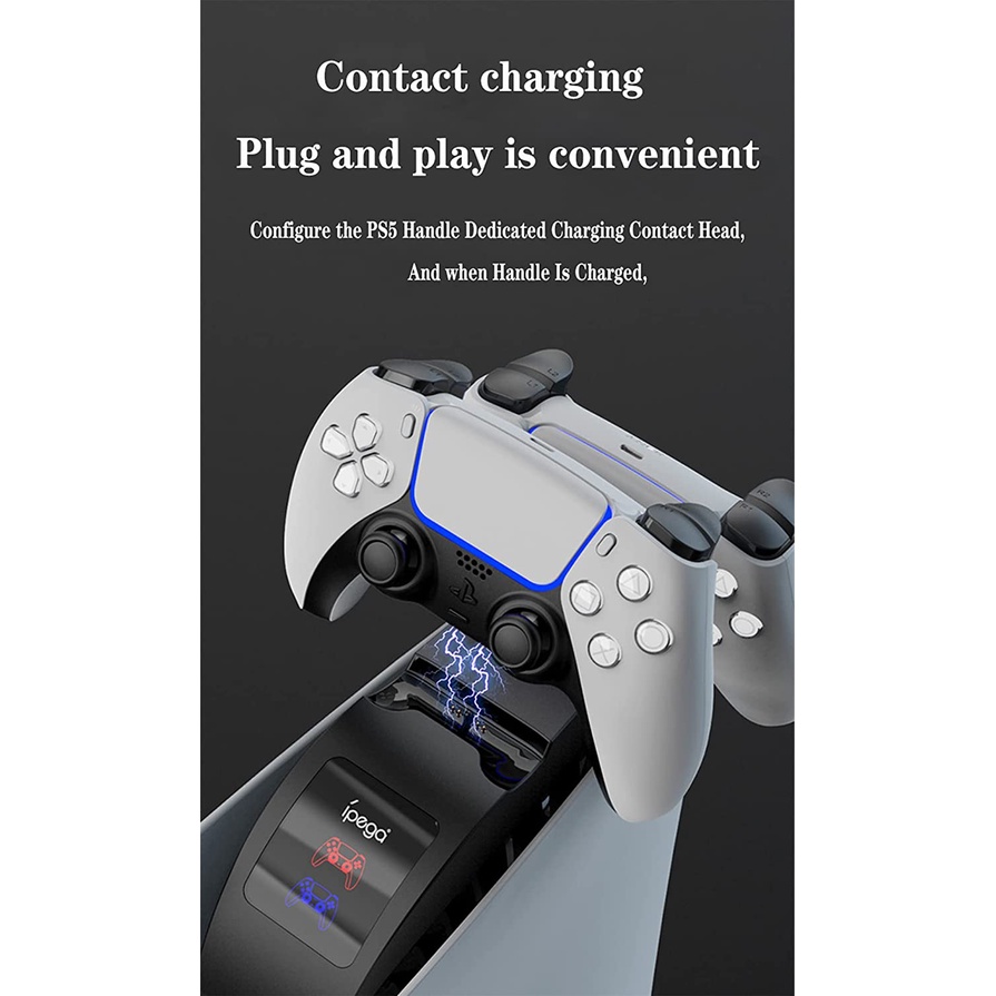 ➡️3. Được trang bị hai vị trí đầu dò sạc chuyên dụng, trang bị đầu tiếp xúc sạc chuyên dụng tay cầm PS5, khi sạc tay cầm rất thuận tiện mang đi tận nơi.