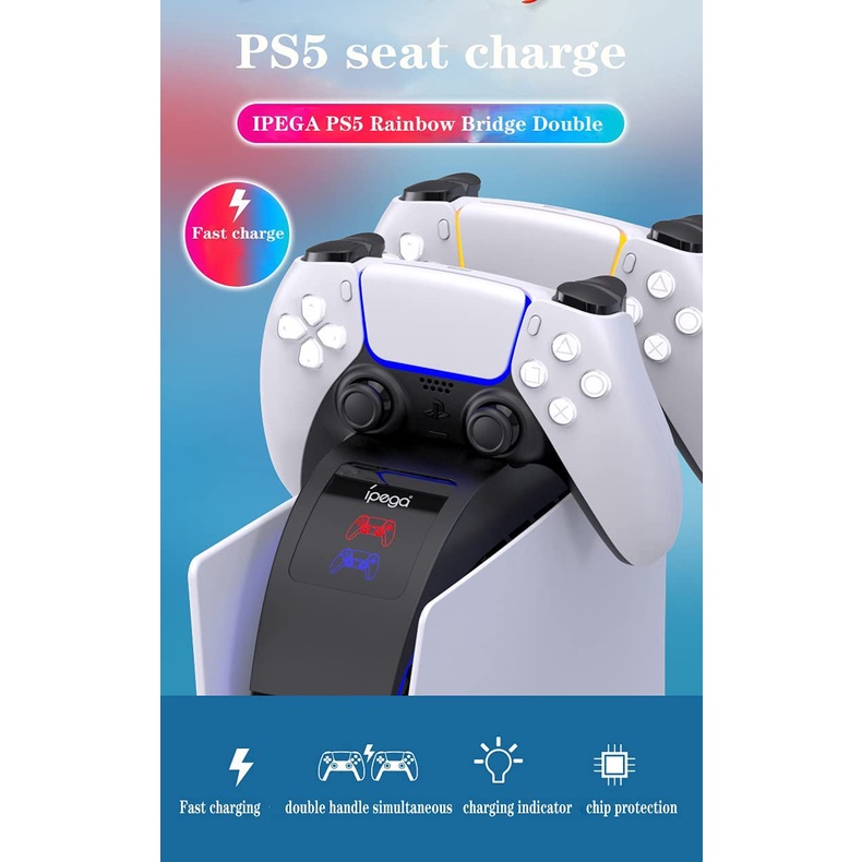 Đế sạc đôi cho tay cầm Playstation 5 - iPega PG 5016➡️1. Sản phẩm này thích hợp để sạc tay cầm PS5 gốc. Nó hỗ trợ sạc nhanh và có thể sạc hai gamepad cùng một lúc.