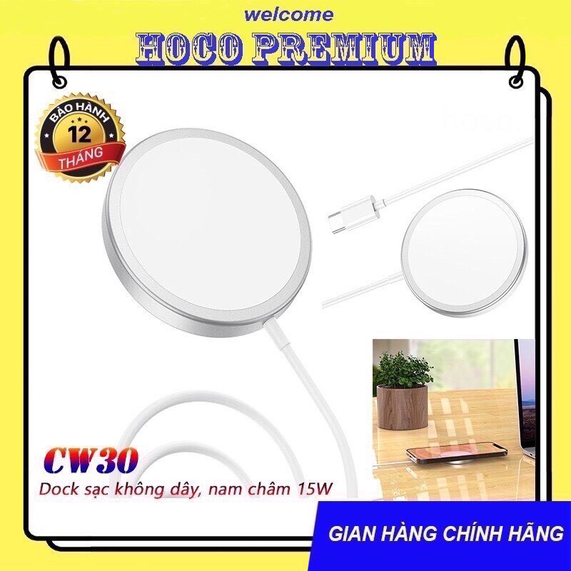 Đế sạc/Dock Sạc Nhanh Không Dây 15W MAGSAFE HOCO CW30 PRO cho iPhone 11/12/12Pro/12Pro max iP Huawei Samsung Oppo Realme