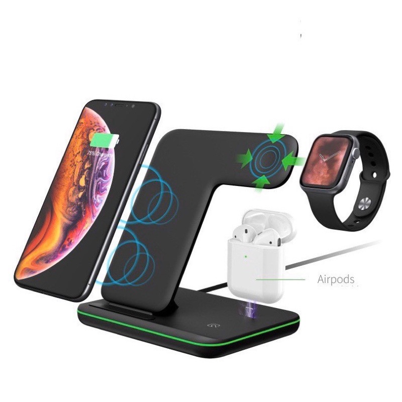Mô tả Sản phẩm❤ Trạm sạc không dây 3 trong 1 có thể sạc đồng thời cho điện thoại / Apple Watch series 5/4/3/2/1 / AirPods, Thiết kế đa chức năng cung cấp cho bạn một đế sạc gọn gàng. Bộ sạc không dây 3 trong 1 chỉ cần 1 sợi cáp sạc sẽ giúp căn phòng hay bàn làm việc của bạn trông đơn giản và gọn gàng hơn, cuộc sống của bạn sẽ thuận tiện hơn.