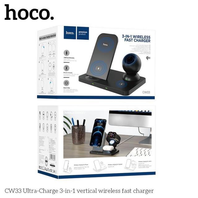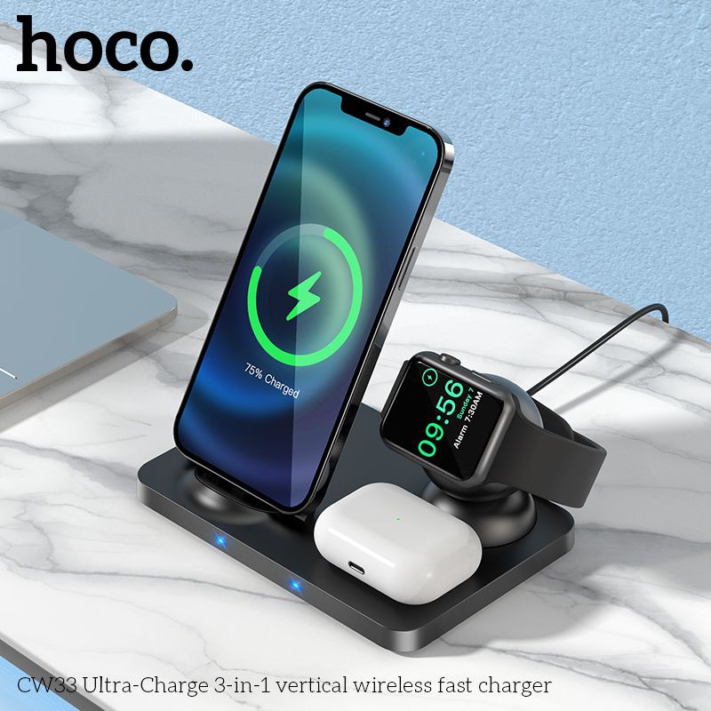 Điện Thoại & Phụ Kiện > Phụ kiện > Cáp, sạc & bộ chuyển đổi > Đế sạc đứng || Đế sạc không dây iphone sạc nhanh Qi 3 in 1 Hoco cw21,cw33 Cdành cho iphone apple watch airpodsCòn hàng