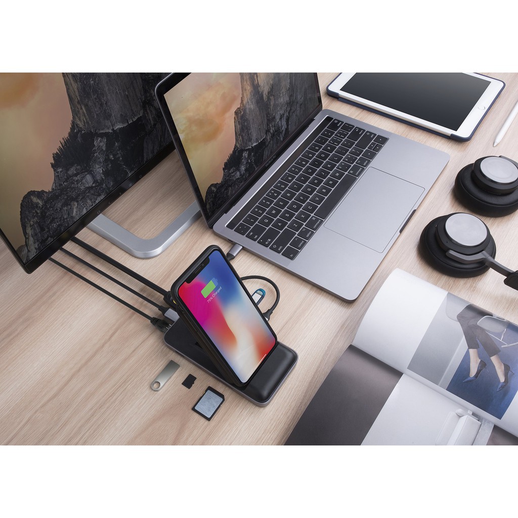 Máy tính & Laptop > Phụ Kiện Máy Tính > Bộ chia cổng USB & Đọc thẻ nhớ || Đế sạc kiêm cổng chuyển HyperDrive 7.5W Wireless Charger Usb-C HubCòn hàng