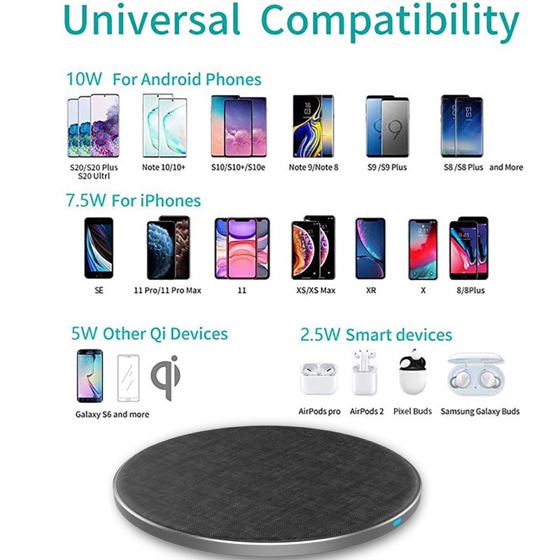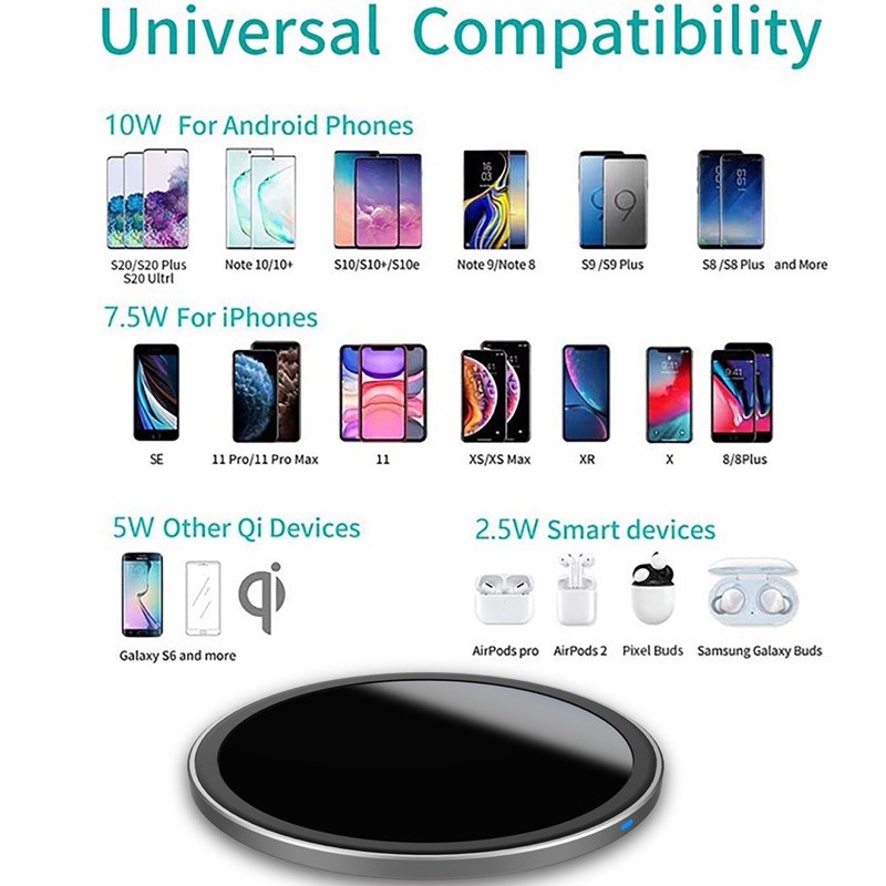 - Sạc nhanh 10w cho các máy andoid và 7,5w cho iphone 11pro max trở về iphone x, Ip8...