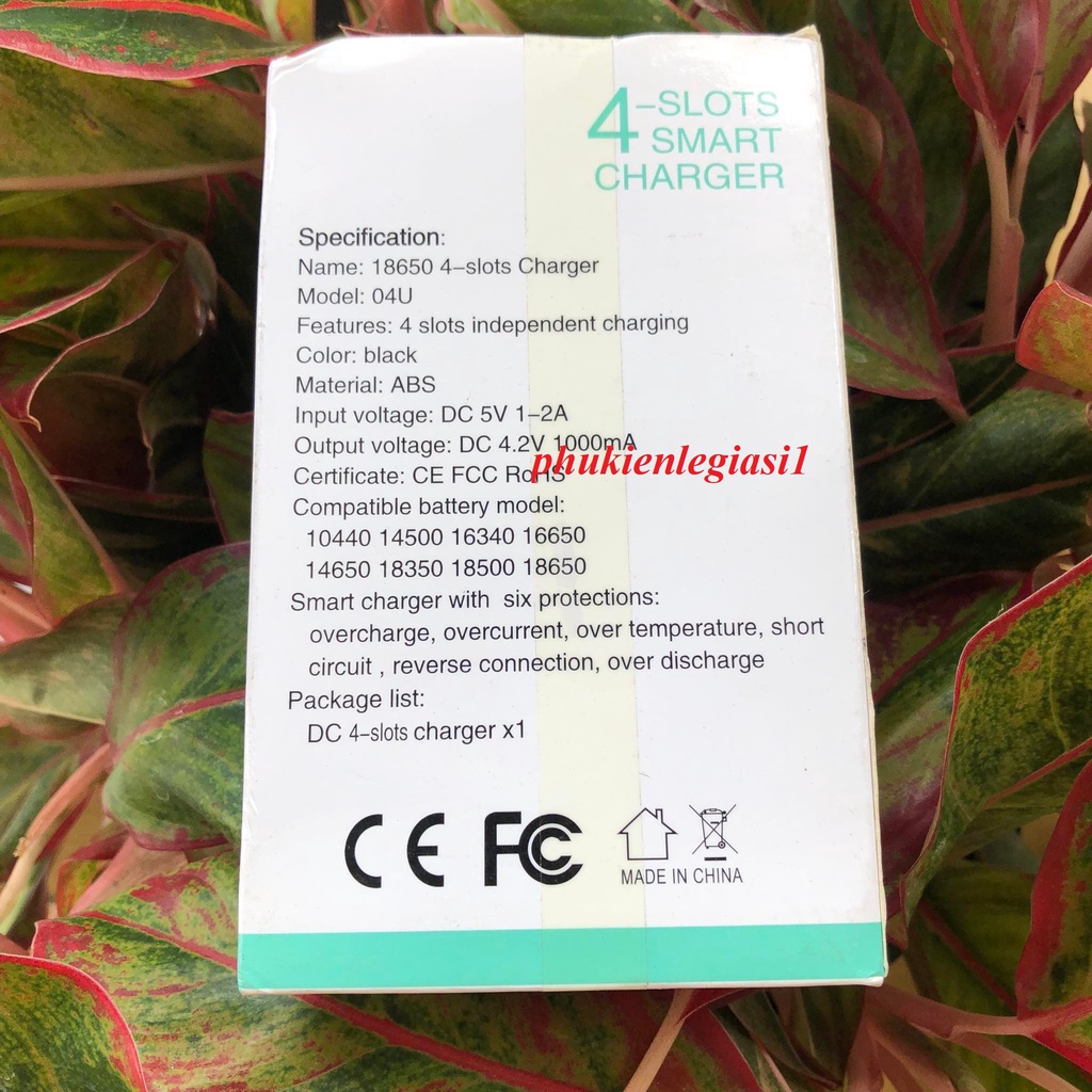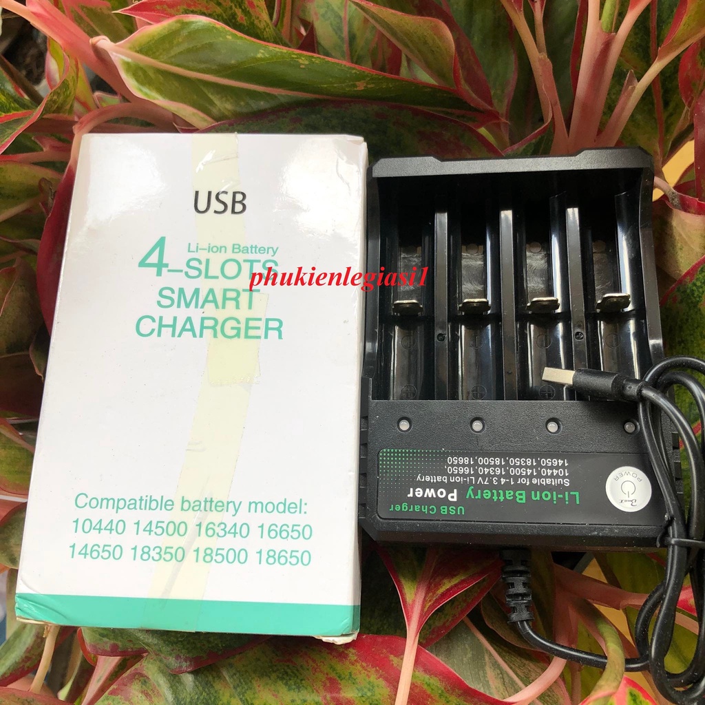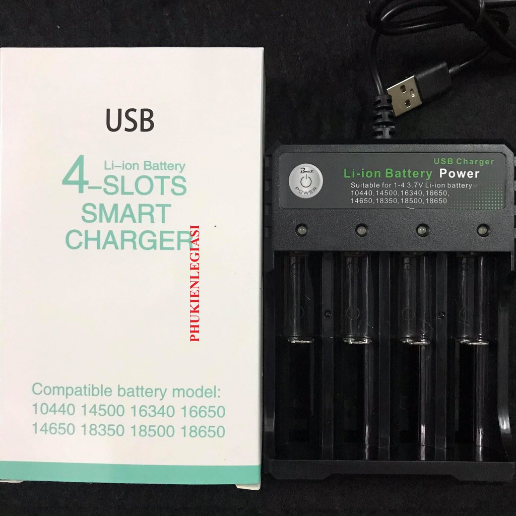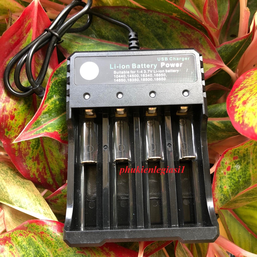 Đế sạc Pin 18650 sạc đồng thời 4 khe Pin công suất mỗi khe 1ALưu ý công suất 1A mỗi khe pin nó còn phụ thuộc vào lượng Pin còn lại và chất lượng của Pin. Khi sử dụng đế này quý khách nên cắm vào cốc sạc có số ampere càng cao càng tốt nên sử dụng cốc trên 2A để rút ngắn thời gian sạc, bên mình khuyên nên sử dụng cốc đạt 3A trở lên để đạt tối ưu nhất khi sạc cùng lúc 4 Pin. Pin sạc có nội trở càng thấp càng tốt sạc mau đầy nó cũng đánh giá chất lượng Pin. Pin quý khách nên mua hãng có tên tuổi dòng xã phù hợp nhu cầu tránh mua Pin rẻ có % ảo.