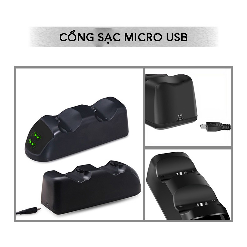 - Sạc cùng lúc cho 2 tay cầm PS4