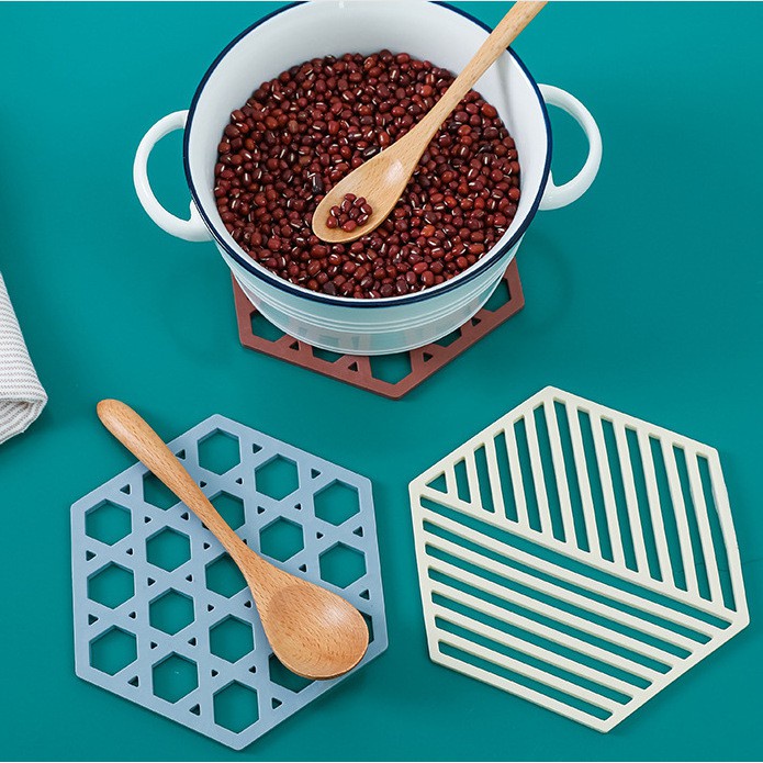 - Miếng lót dùng để lót ly, cốc, bát, đĩa trên bàn ăn hay xoong, nồi trong nhà bếp. Tạo hình lục giác cực kì ấn tượng và bắt mắt với gam màu pantone cực kì nổi bật