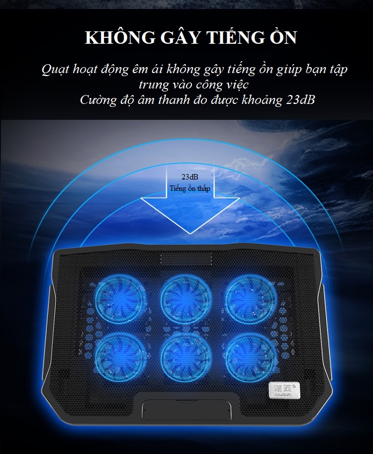 Và chiếc quạt Đế Tản Nhiệt Cao Cấp với 6 quạt làm mát giúp nhanh chóng lấy đi sức nóng của máy tính giúp cho máy tính của bạn luôn trong trạng thái mát mẻ là sự lựa chọn hoàn hảo của bạn