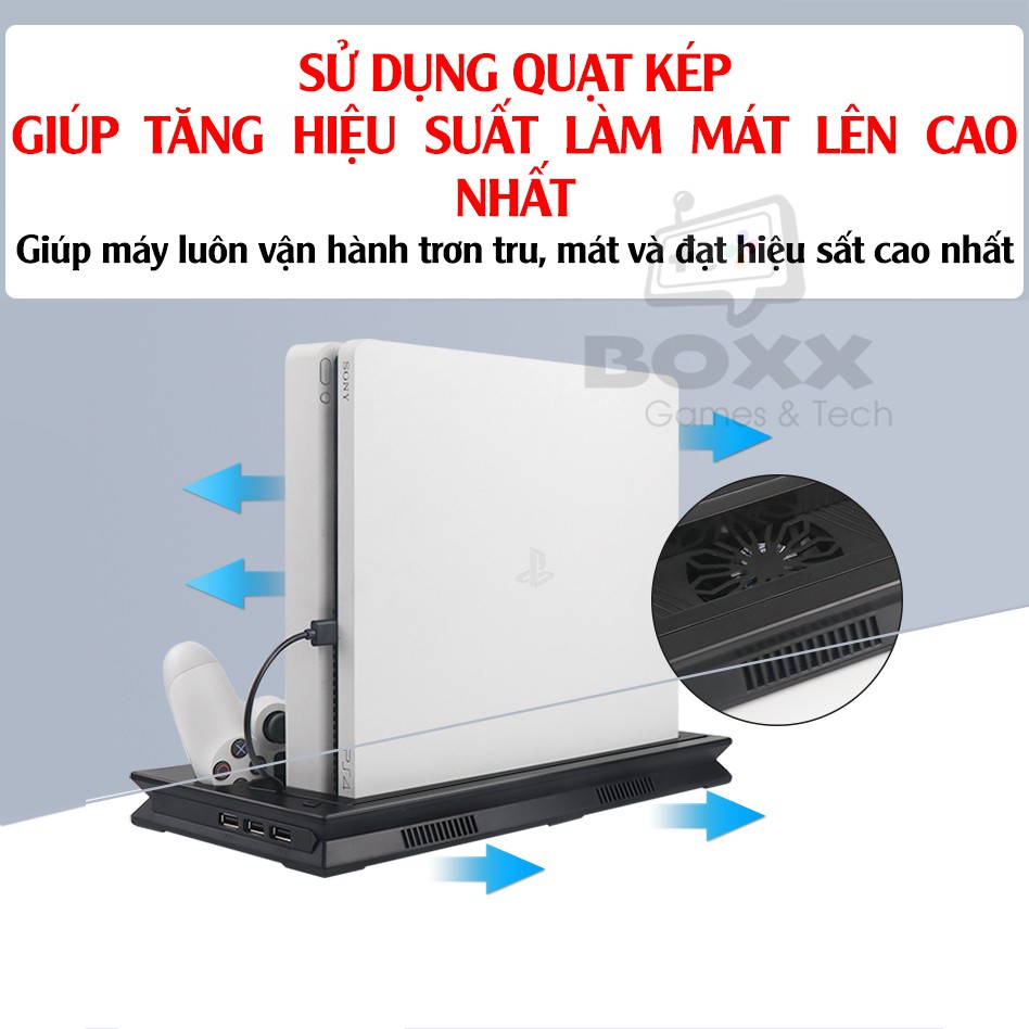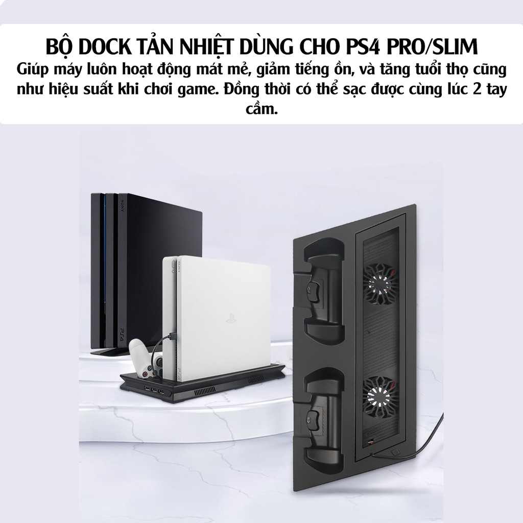 Đế tản nhiệt cho máy PS4 Slim/Pro kèm dock sạc tay cầm, đế đứng làm mát cho máy PS4