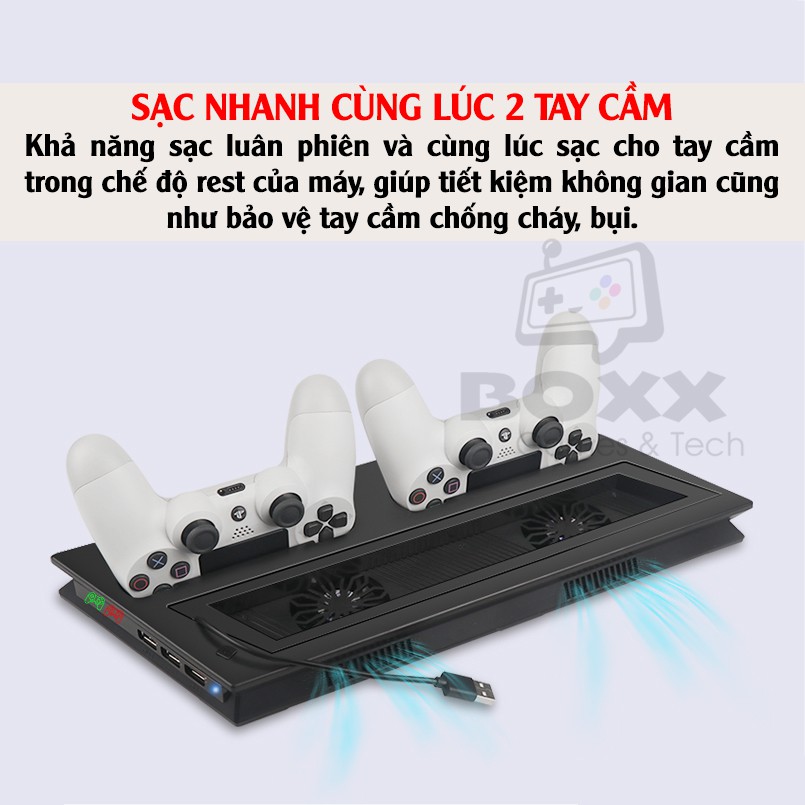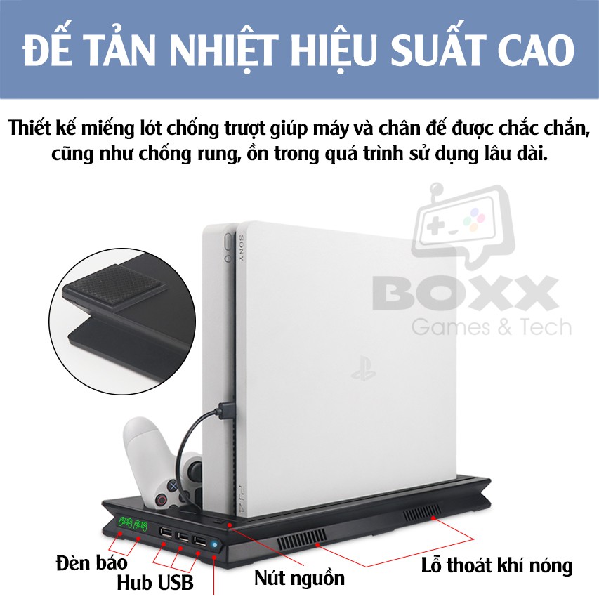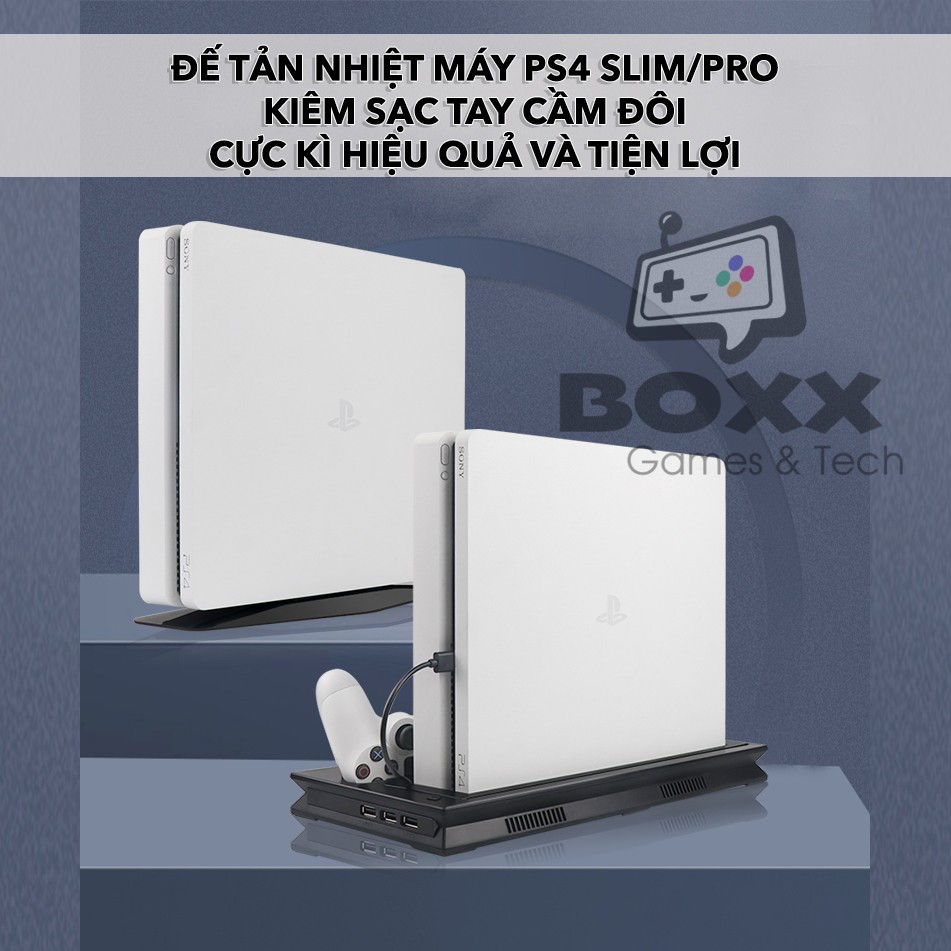 Gaming & Console > Phụ kiện console || Đế tản nhiệt cho máy PS4 Slim/Pro kèm dock sạc tay cầm, đế đứng làm mát cho máy PS4Còn hàng