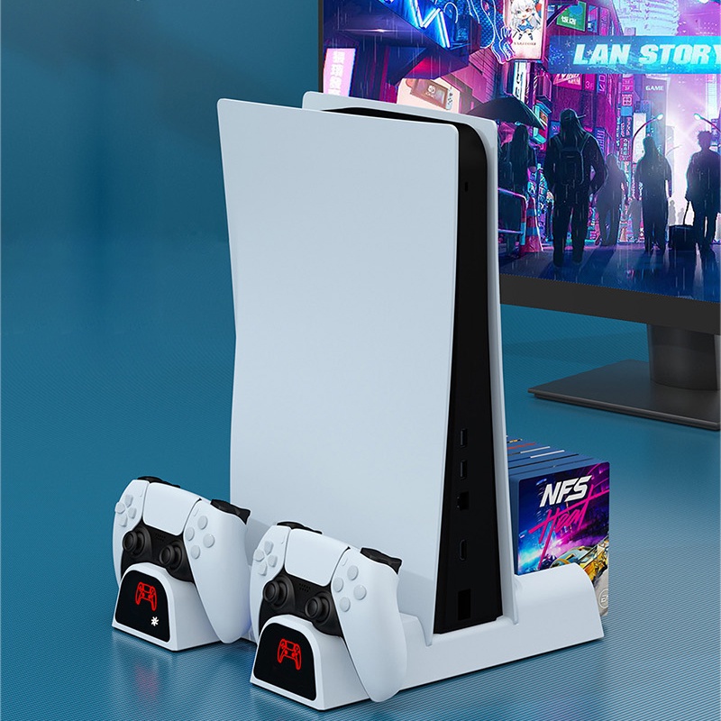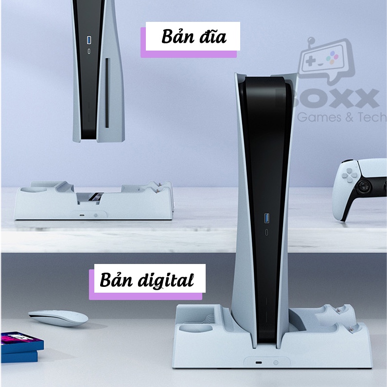 Gaming & Console > Phụ kiện console || Đế tản nhiệt cho máy PS5 kèm dock sạc tay cầm có led, Dock làm mát cho máy chơi game PS5Còn hàng