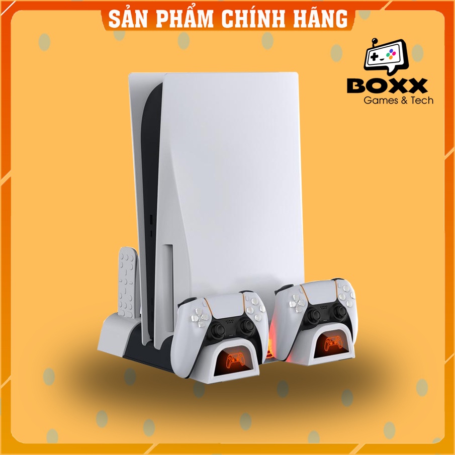 Đế đứng tản nhiệt cho máy PS5 kèm dock sạc tay cầm, khay đựng đĩa, chân đế làm mát máy PS5 All in One- Bộ sản phẩm đến từ thương hiệu Dobe chuyên sản xuất phụ kiện cho ngành game nhiều năm kinh nghiệm