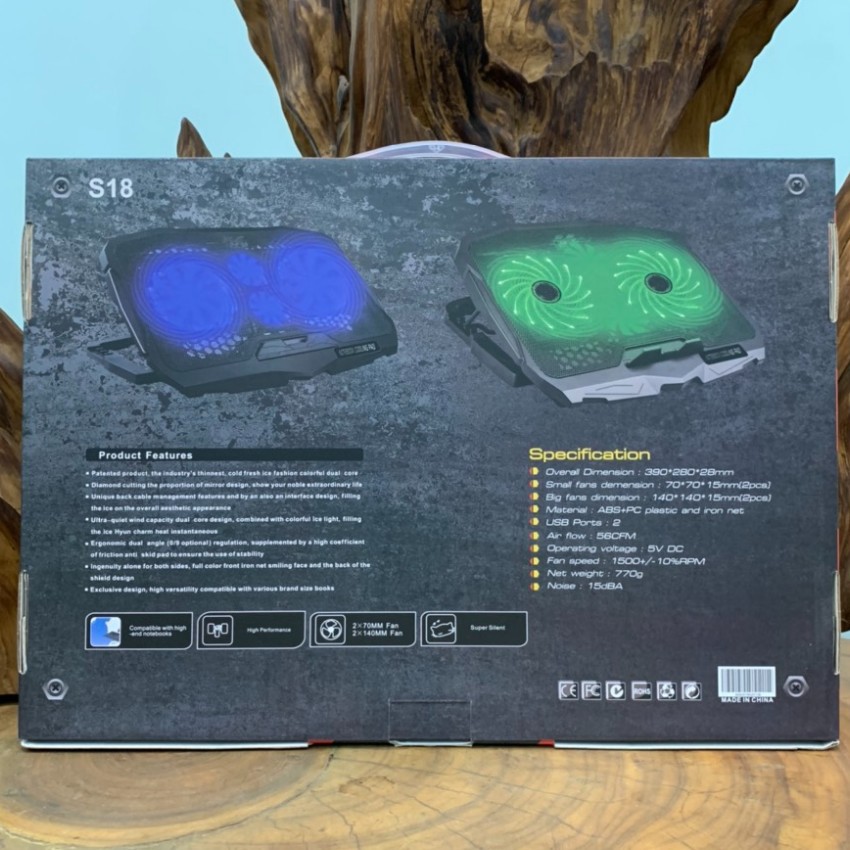 Máy tính & Laptop > Linh Kiện Máy Tính > Quạt và Tản Nhiệt || Đế Tản Nhiệt Cooling Pad S18 - 4 FAN Siêu Mát, Giải Nhiệt Cực Nhanh - CÓ ĐÈN LED - Full BoxCòn hàng