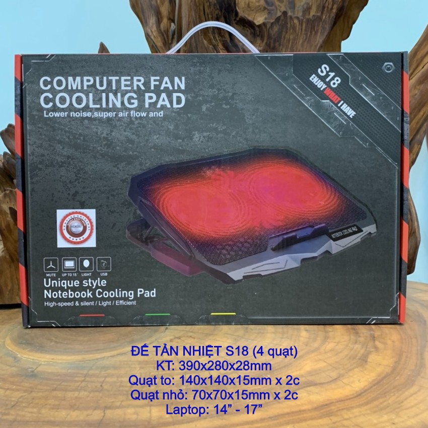 Đế tản nhiệt Laptop S18 (4 QUẠT ) 14-19 in