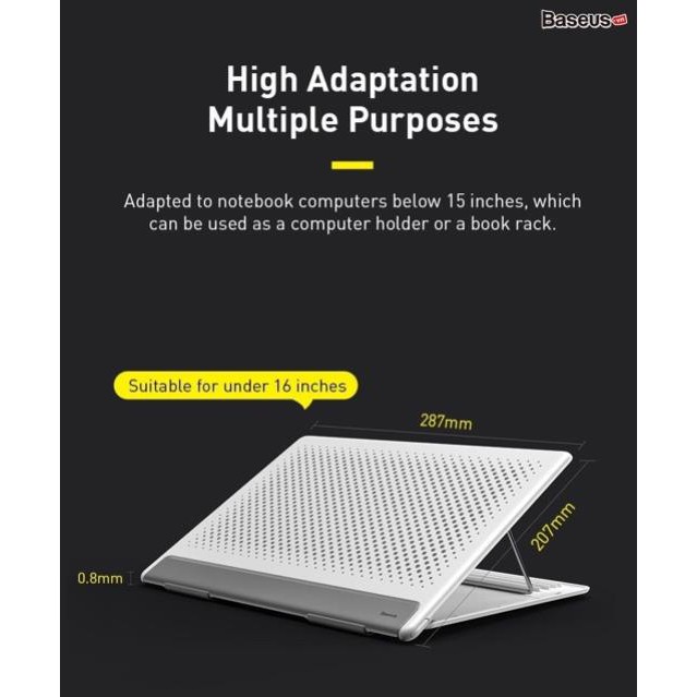 Đế Tản Nhiệt Laptop Kiêm Giá Đỡ Xếp Gọn Di Động Baseus là một phụ kiện rất hữu ích cho cả máy tính giúp máy hoạt động bền bỉ và cho cả người sử dụng, giúp giảm thiểu chứng đau mỏi cổ, vai do tư thế văn phòng trong thời gian dài.