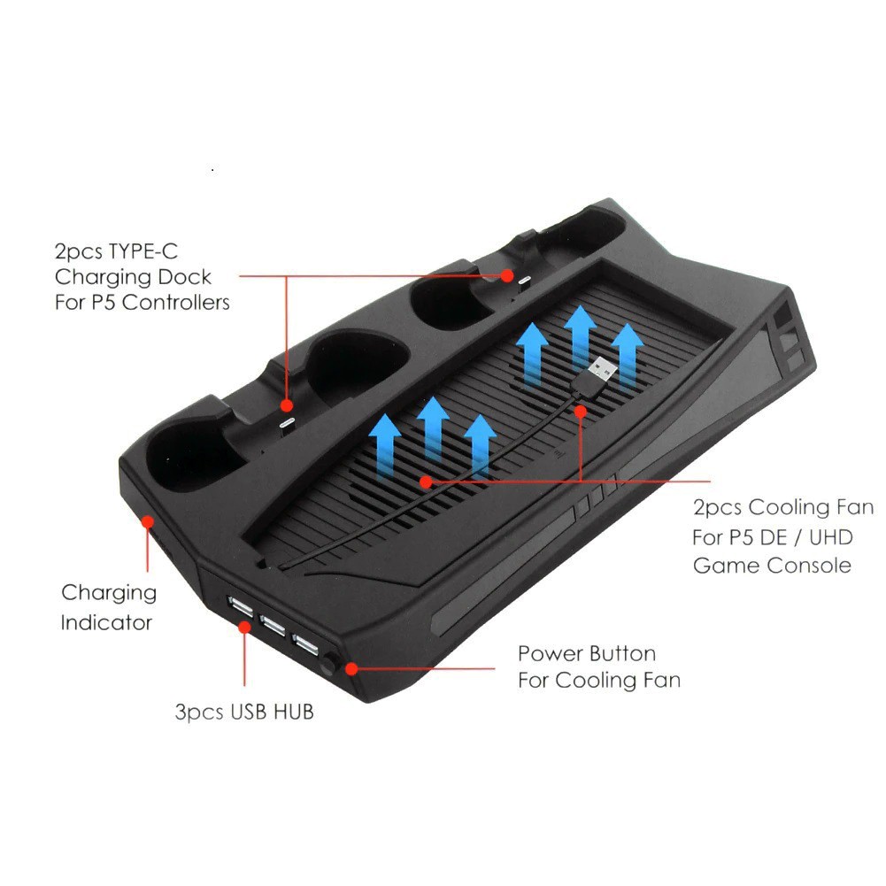 Gaming & Console > Phụ kiện console || Đế Tản Nhiệt Đứng Cho Máy Chơi Game PS5/Playstation 5 Kiêm Sạc Cho Tay Cầm Chơi Game PS5Còn hàng