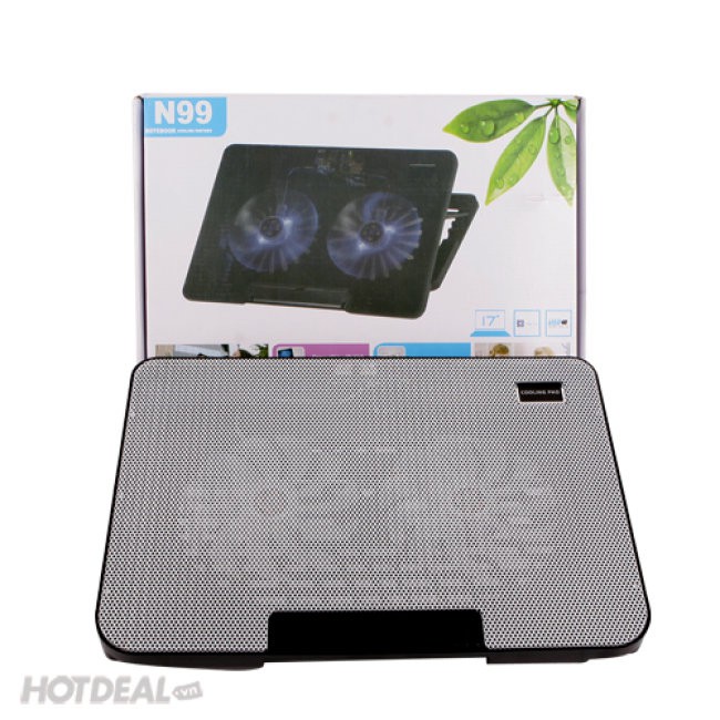 Đế tản nhiệt Laptop 2 Quạt Coolingpad N99 Có Đèn Led Đế Nâng 45 Độ Cực Bền - Máy Tính TT