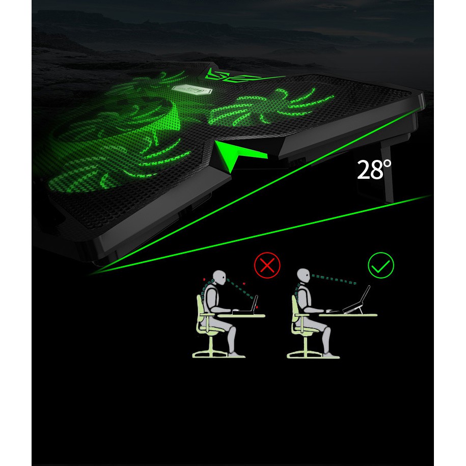 Đế tản nhiệt laptop 5 quạt quạt tản nhiệt gaming 1400RPM chống trượt làm mát nhanh COOL 2S GEMINI SHOP