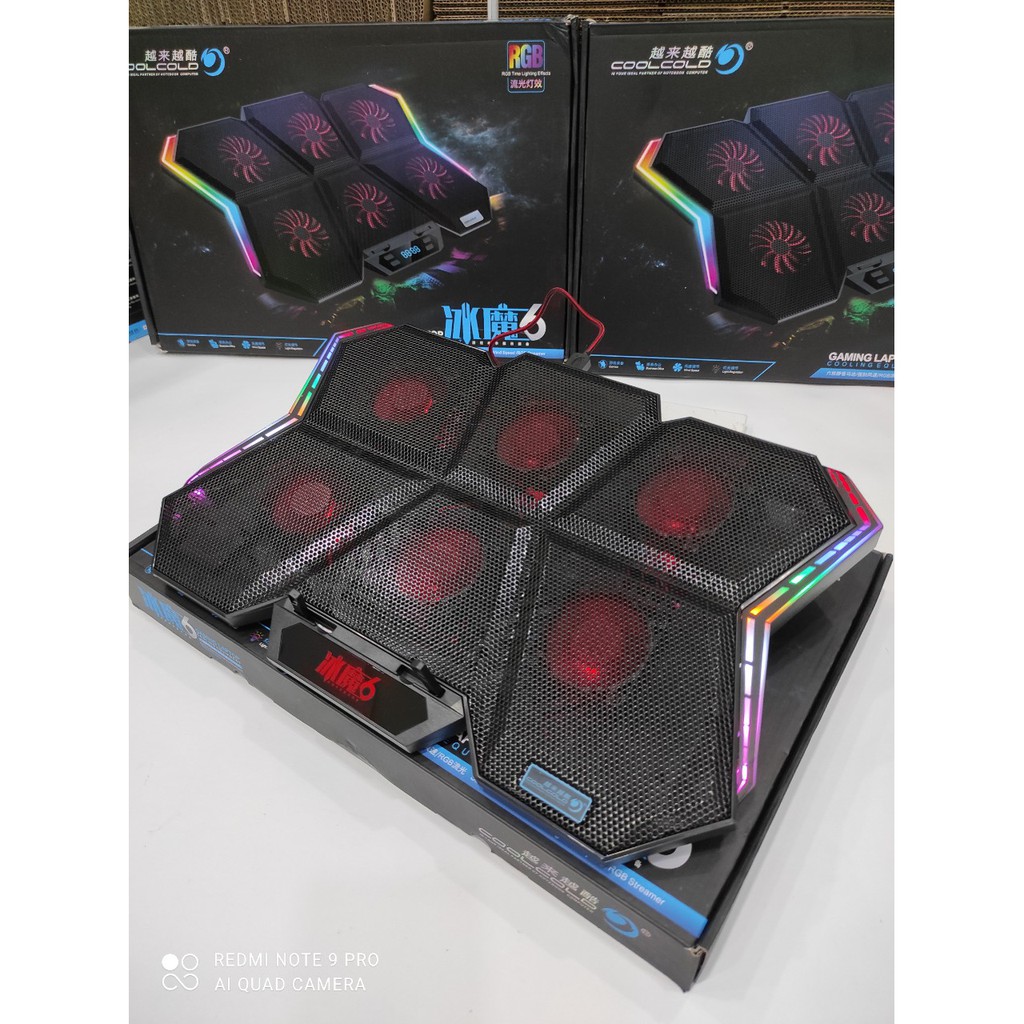 Đế Tản Nhiệt Laptop 6 Quạt Cực Mát, Viền Led 7 Màu Chuẩn Gaming