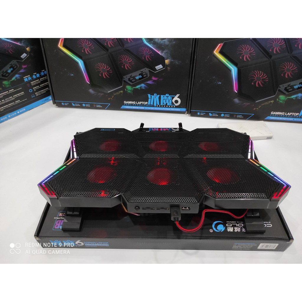 Đế Tản Nhiệt Laptop 6 Quạt Cực Mát, Viền Led 7 Màu Chuẩn Gaming sẽ giúp laptop bạn tránh bị quá nhiệt khi cày game liên tục , giúp máy hoạt động ổn định hơn.Thông tin Đế Tản Nhiệt Laptop 6 Quạt Cực Mát, Viền Led 7 Màu Chuẩn Gaming