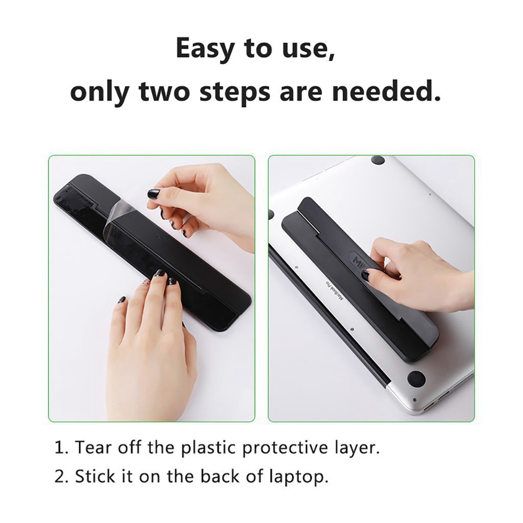 Thanh đỡ cho Macbook dán dưới chân máy với keo chuyên dụng có độ bám rất chắc chắn, dùng phù hợp cho các máy từ 11 inch cho đến 15 inch. Đế kê tản nhiệt cho Laptop khi dựng chân lên có chiều cao là 2cm ( khoảng 8º) và khi gấp lại để bình thường có độ cao so với mặt bàn 0.5cm. Chất liệu của đế tản nhiệt là nhựa ABS hoàn toàn là một màu đen.