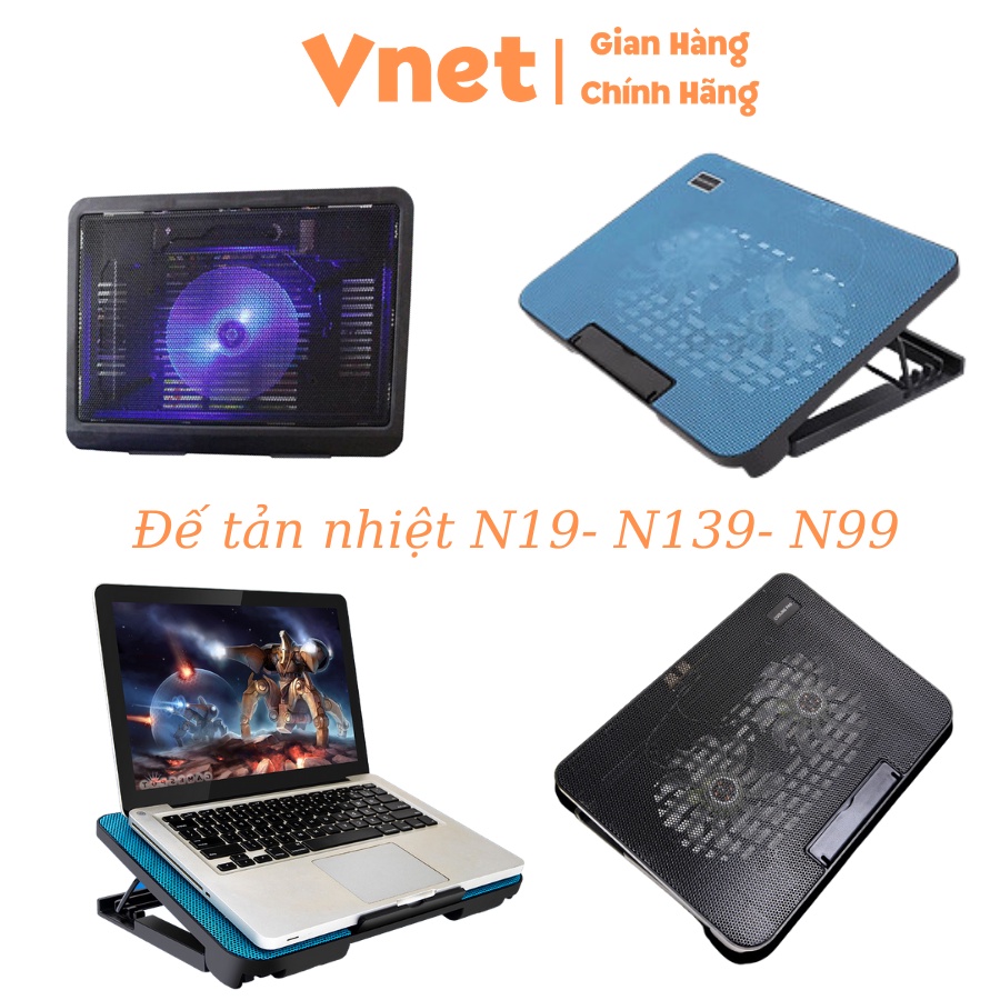 Đế tản nhiệt laptop macbook N99 S18 Cooling Pad 2 Quạt đèn led đế nâng 45' N19 N139 N168 từ 17 inch trở xuống VNET