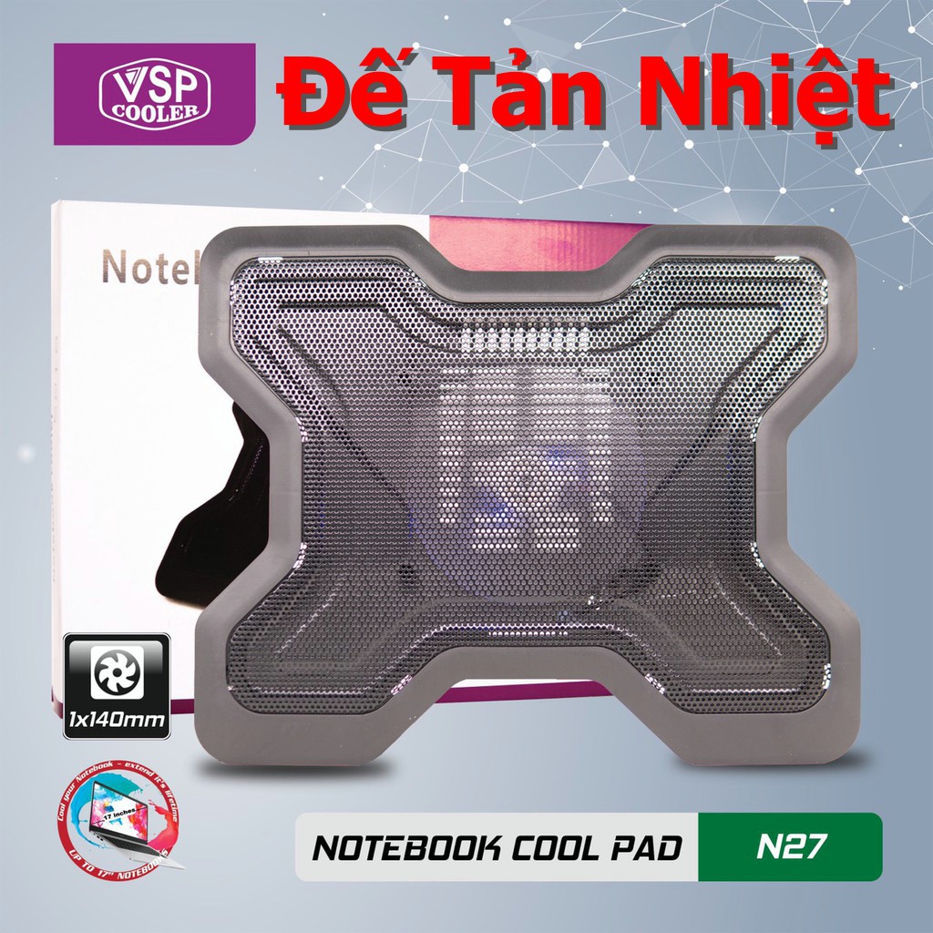 - Đế tản nhiệt N27 1 Fan hạn chế nhiệt độ của máy khi làm việc qua đó tăng độ bền của Pin (giảm độ chai Pin), giúp tăng độ bền cho ổ cứng (giảm ma sát hạn chế hỏng cơ ổ cứng), tăng độ bền cho Main .v.v…- Kích thước sản phẩm: 350 x 320 x 35 mm