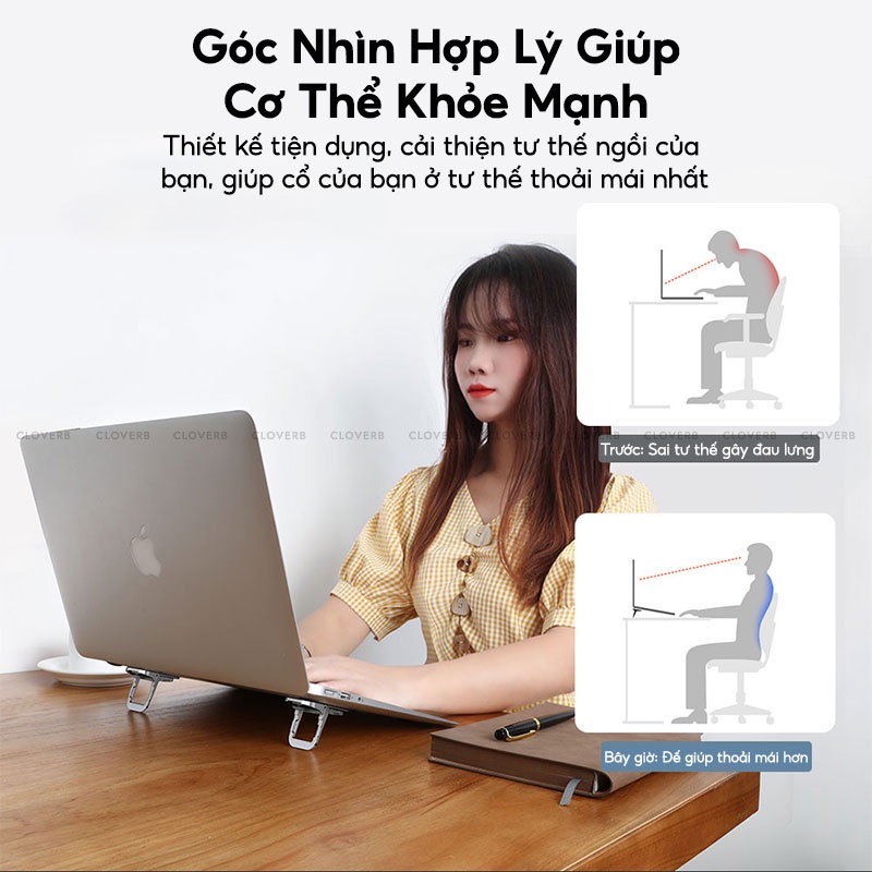 💻 Đế nâng Macbook còn được trang bị silicon chống trượt để tránh trầy xước trên bàn của bạn và, tăng ma sát và vững chắc hơn, không bị lung lay khi gõ phím.
