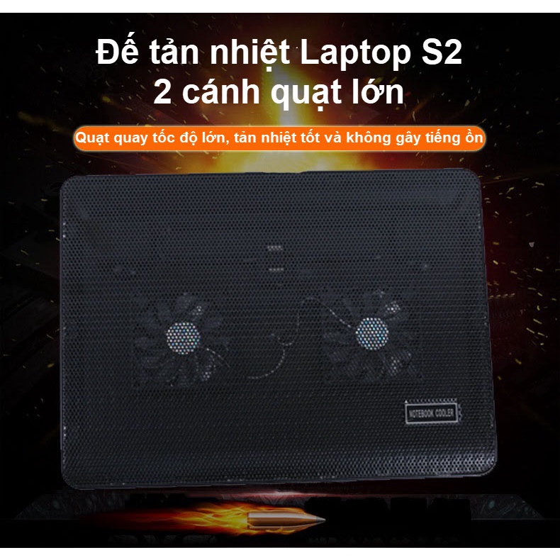 Đế Tản Nhiệt Laptop S2 - 15.6 inch - 2 Quạt Mạnh Mẽ, Thiết Kế Đẹp, Bền, Chắc