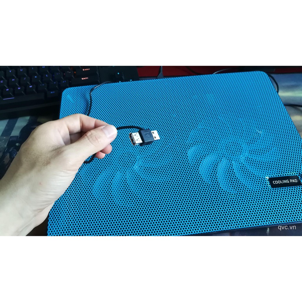 + Hai quạt gió lớn được thiết kế ở trung tâm với kích thước 12cm mỗi quạt,công suất quạt lớn giúp tản nhiệt và mát laptop hiệu quả nhanh chóng.Thiết bị cắm cổng USBtiện lợi và khi cắm sẽ có đèn led xanh cực bắt mắt nhé.