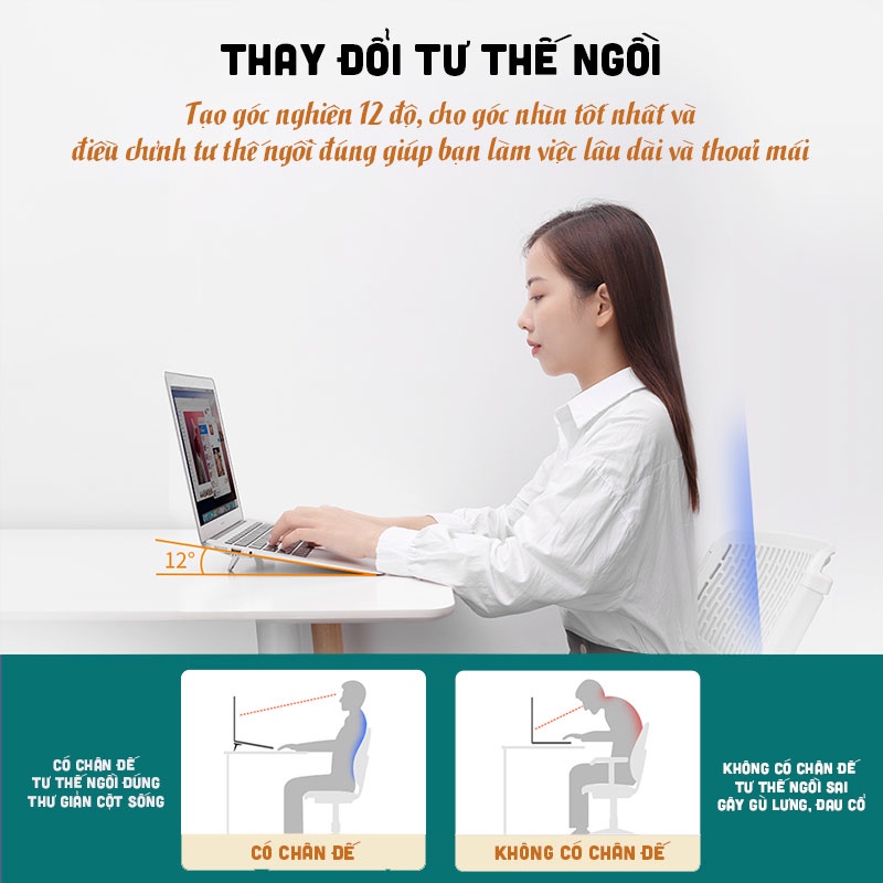 🔷 Tư thế không tốt khi sử dụng máy tính xách tay có thể dẫn đến tê cứng vai gáy, thậm chí gây ra các bệnh về vai gáy. NILLKIN Bolster Portable Stand Tạo góc nghiêng vàng 12 độ, cho góc nhìn tốt nhất, giúp bảo vệ cột sống cổ và giúp việc gõ phím dễ chịu & điều chỉnh tư thế ngồi đúng giúp bạn làm việc lâu dài và thoải mái.