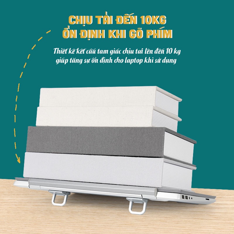 🔷 Sản phẩm có thiết kế kết cấu tam giác chịu tải lên đến 10 kg giúp tăng sự ổn định cho laptop khi sử dụng.