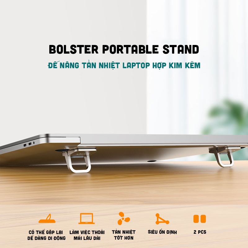 🔷 Đế nâng laptop NILLKIN Bolster Portable Stand có kích thước nhỏ gọn siêu di động, chỉ mất 1 giây để gấp lại nhanh chóng, dể dàng bỏ vào balo và mang đi. Nó không chỉ có thể là giá máy tính xách tay mà còn có thể là giá đỡ điện thoại di động, giá đỡ máy tính bảng.