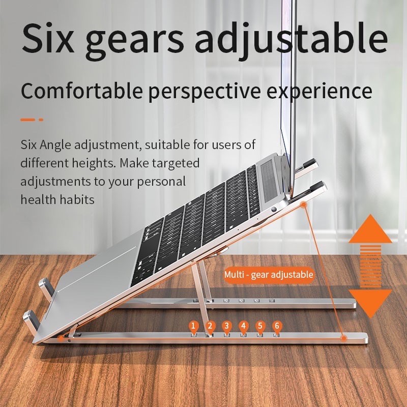 Giá đỡ Laptop Macbook, máy tính bảng ipad bằng nhôm và đế đọc Sách + có thể xếp gọn + điều chỉnh độ cao.Tặng kèm bao đựng tiện lợi.