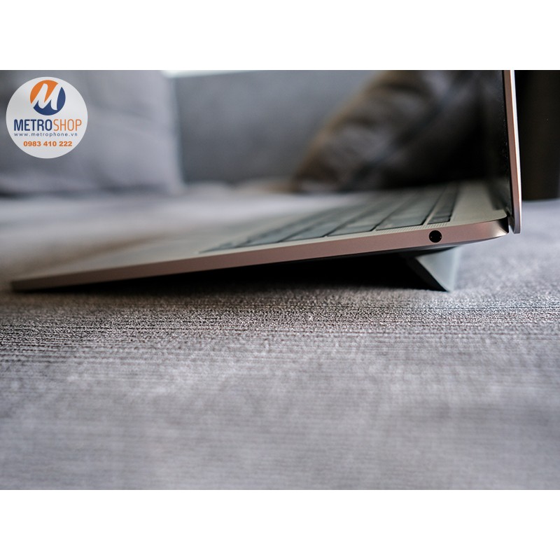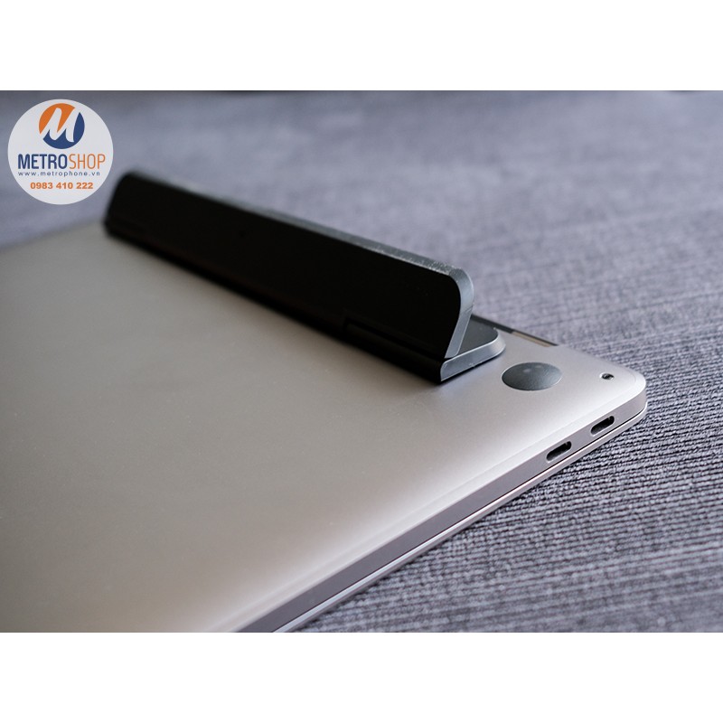 Khi được bật lên, chiếc đế này tạo hình 1 góc chữ V 8 độ. Đây là độ cao lý tưởng cho cổ tay bạn khi sử dụng. Các nhân Metrophone cũng đang sử dụng chiếc đế này cho Macbook của mình.