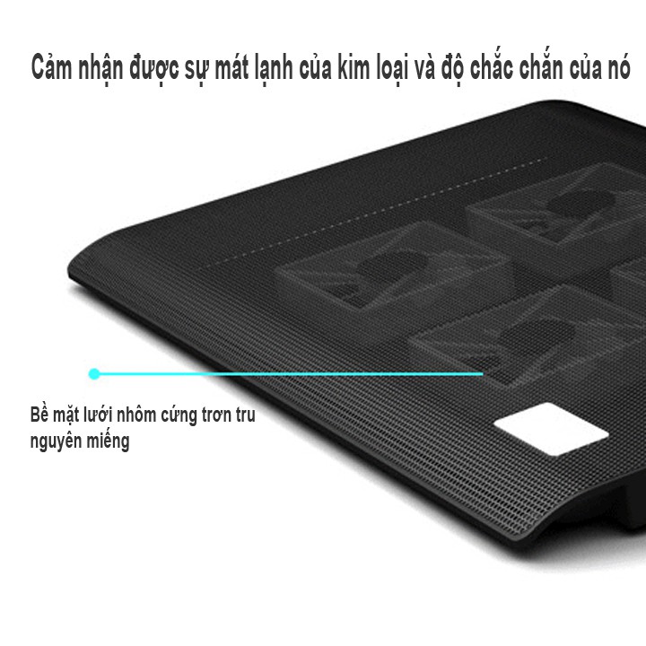 Đế tản nhiệt Nuoxi L112 - 6 quạt cực mạnh, chạy cực êm, với chân nâng Cao, và đèn led huyền ảo trong đêm100% làm từ chất liệu thiên nhiên tinh khiết, bảo vệ bạn khỏi sự ô nhiễm. 6 quạt yên tĩnh loại I 8015 động cơ siêu tốc độ giúp Laptop tản nhiệt nhanh chóng, đèn Led xanh. Chất liệu cứng cáp chịu lực tốt, thiết kế đẹp. Lưới kim loại chống trượt cực tốt, Có chân thay đổi góc độ thay đổi tư thế bảo vệ mắt và cổ tay.