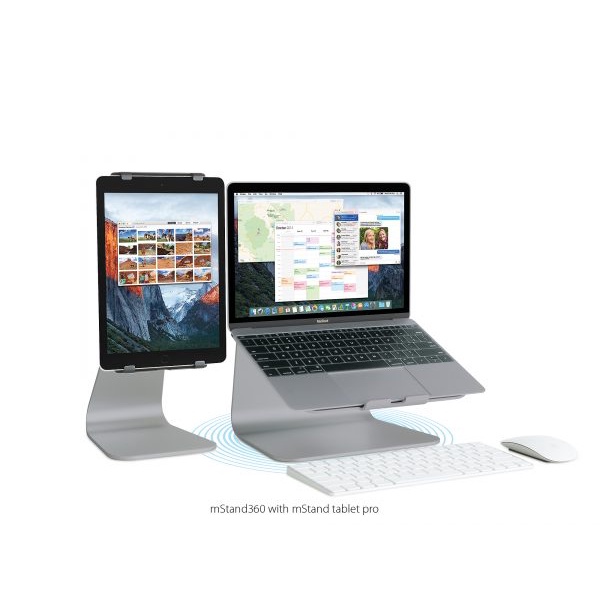 mStand 360 với chân đế xoay biến máy tính xách tay của bạn thành một máy trạm (workstation) ổn định giúp bạn có thể làm việc thoải mái và và phong cách để bạn có thể làm việc thoải mái và chia sẻ ý tưởng với người khác một cách tự nhiên chỉ bằng cách đẩy 1 ngón tay.