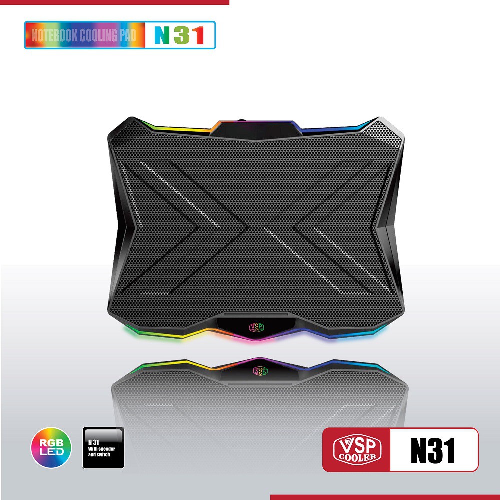Đế tản nhiệt VSP COOLER N31 cho laptop từ 10" đến 18" Led RGB (Đen)