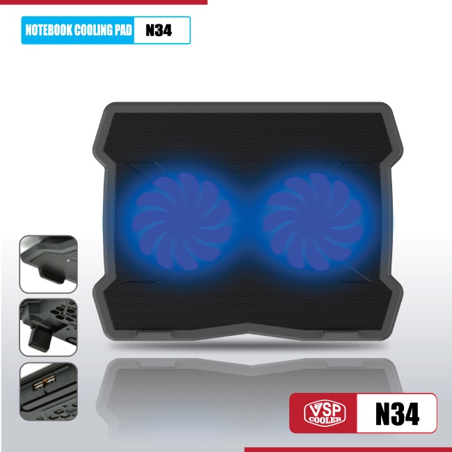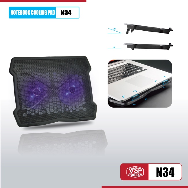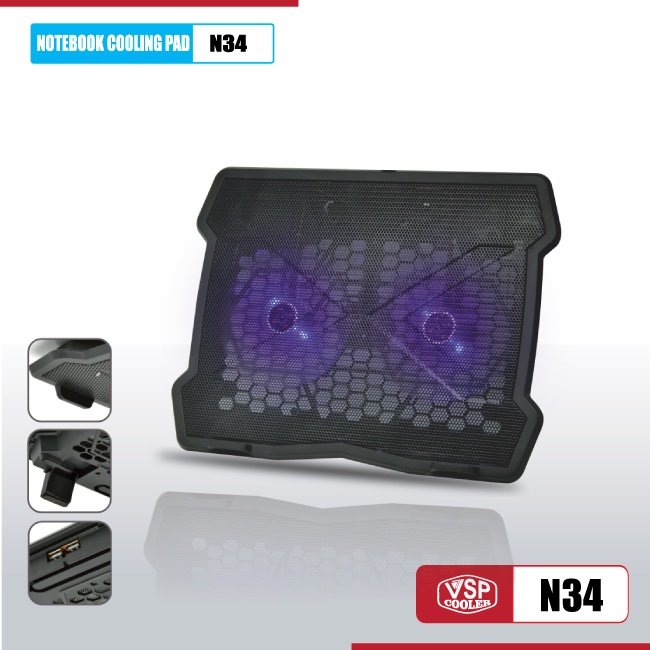 Máy tính & Laptop > Phụ Kiện Máy Tính > Đế Tản Nhiệt || Đế Tản Nhiệt VSP Cooler N34 LED (2*Fan 12.5cm)Còn hàng