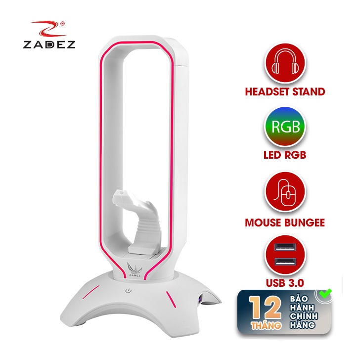 Giới thiệu [Mã BMBAU50 giảm 10% đơn 99k] Đế Treo Tai Nghe Đèn RGB kiêm Mouse Bungee, Hub 3.0 ZADEZ ZHS-701G WHITE